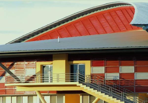 建筑用彩鋼板一般以熱鍍鋅鋼板和熱鍍鋁鋅鋼板為基板,主要加工成瓦楞板或與聚氨酯復(fù)合夾芯板后,用于建造鋼結(jié)等工業(yè)和商業(yè)建筑的屋頂、墻面、門。